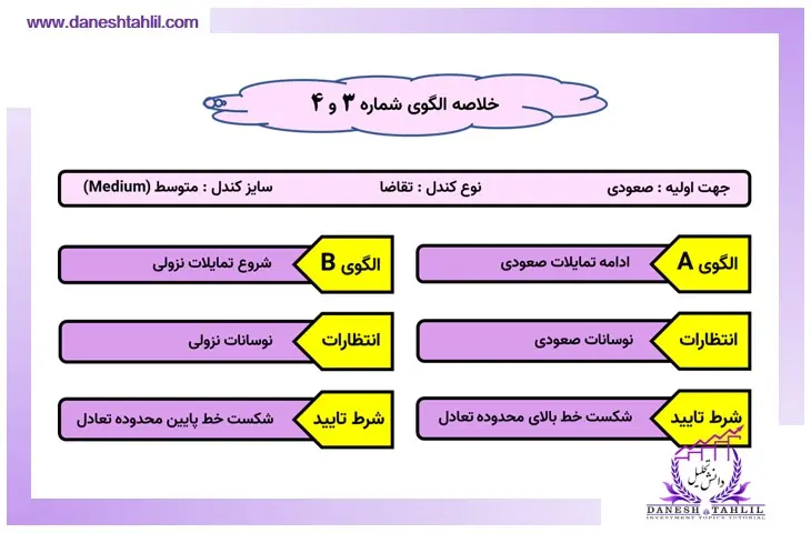 • سرعت حرکت بازار در الگوی قبلی بیشتر از این الگو است.