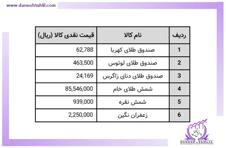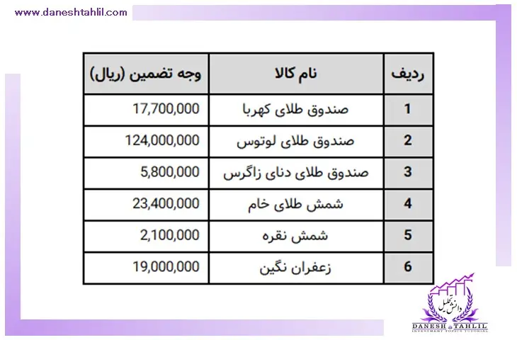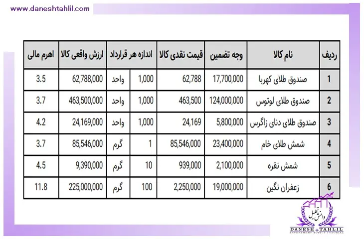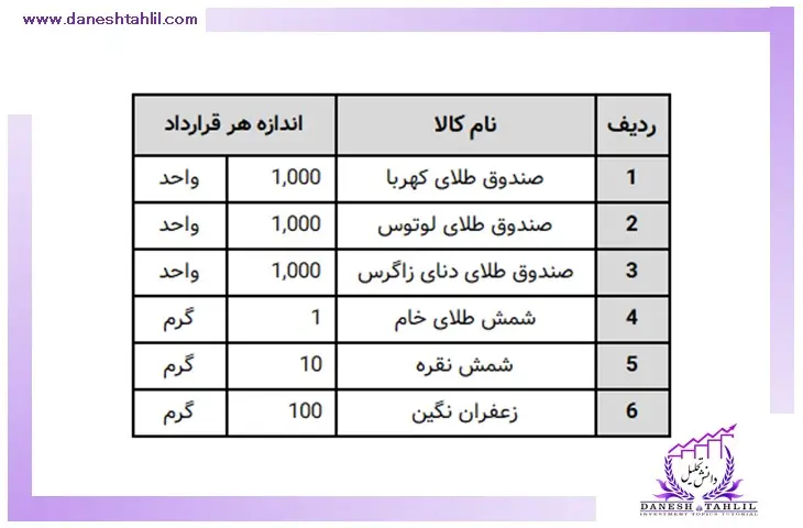 1. همان‌طور که در بالا عنوان شد در ابتدا اطلاعات مربوط به “قیمت کالا در بازار نقدی” و “میزان وجه تضمین کالا” و “اندازه هر قرارداد” را از منابع ذکر شده، برای محصولات فوق به دست می‌آوریم.