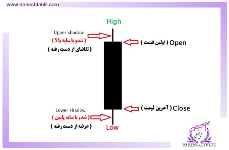 کندلی است که در آن عرضه‌کنندگان (فروشندگان) بر تقاضاکنندگان (خریداران) غلبه نموده و قیمت را کاهش می‌دهند که به شکل کندلی تو پر ترسیم شده و اولین قیمت (Open) آن بالاتر از آخرین قیمت (Close) است (CLOSE  <  OPEN)